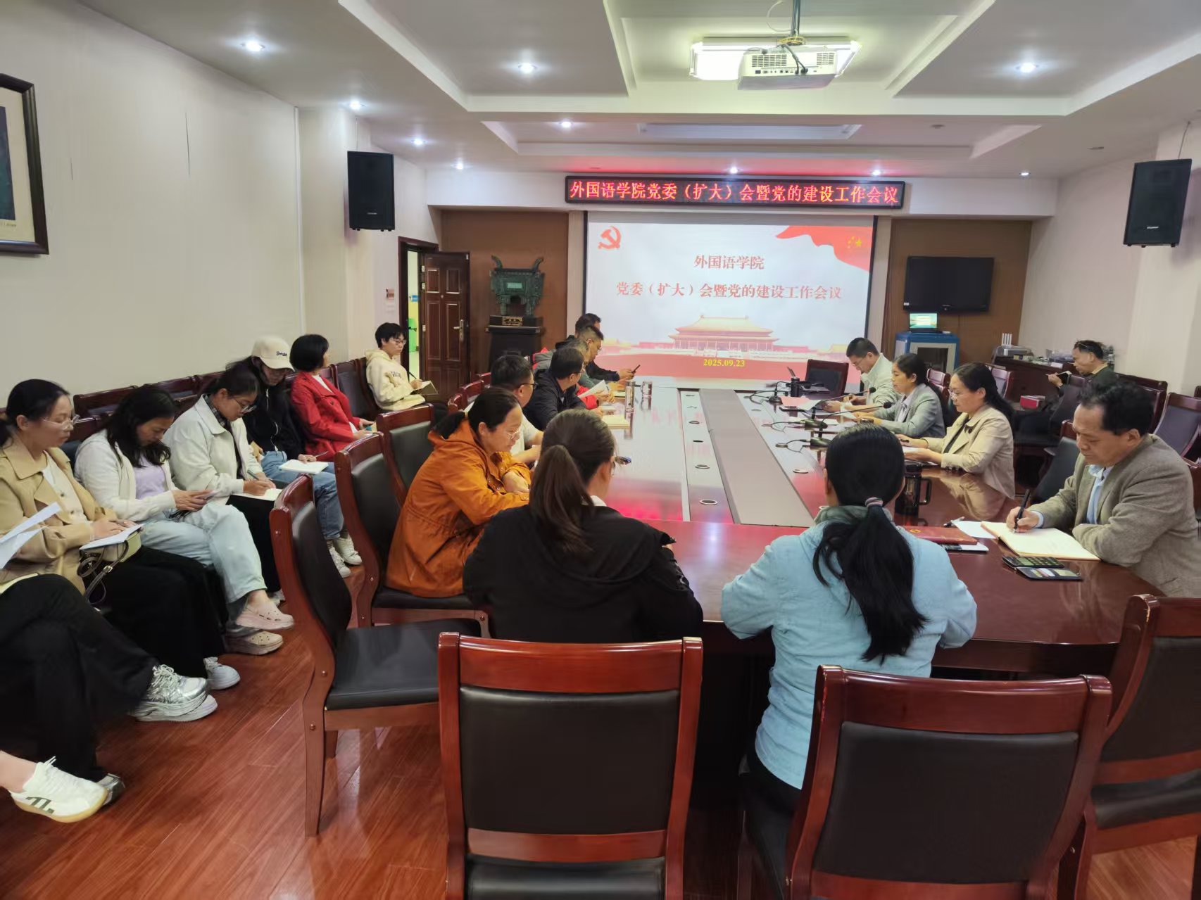 9月23日,我集团在文综楼311室召开党委扩大会暨党的建设工作会议。学院党委委员、全体院领导、科级干部、教工及学生党支部书记、组织员、师生党员代表参加。会议由我集团党委书记许荣梅主持。